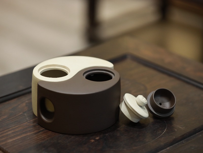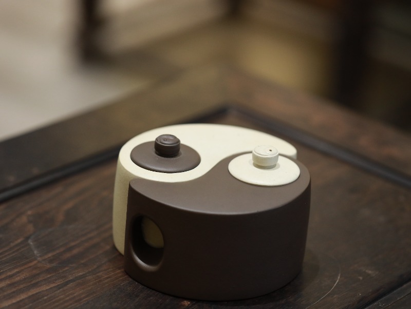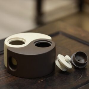 Ấm tử sa Bát Quái Hồ chế tác thủ công từ bạch nê và tử nê, dung tích 250ml, do Đại sư Hạ Tuyển Nam thực hiện. Dáng ấm mang cấu trúc bát quái – âm dương tương sinh, tạo hình khối rõ nét, cá tính mạnh, hiếm gặp trong hệ dáng tử sa truyền thống.