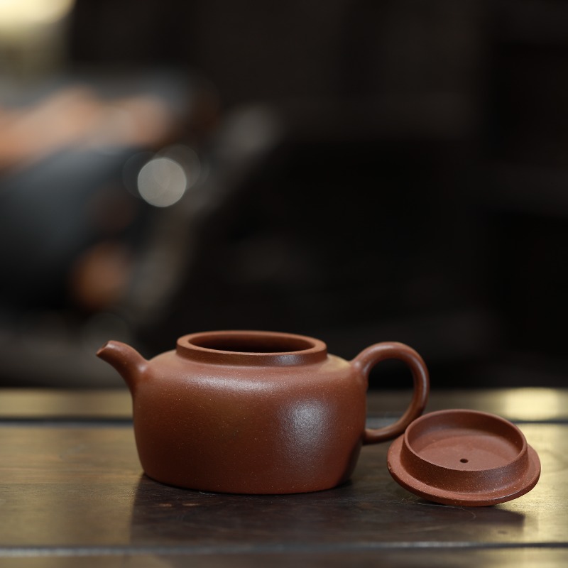 Ấm tử sa dáng Biến Thể, chế tác thủ công từ tử nê, dung tích 280ml. Dáng ấm thấp, thân tròn dẹt, miệng rộng, giữ nhiệt tốt và cho nước trà ổn định, phù hợp pha trà cần chiều sâu vị và hậu kéo dài.