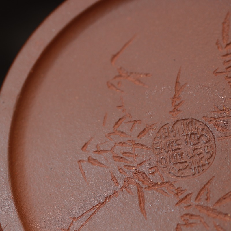 Chất liệu đáy tào thanh có kết cấu hạt rõ, độ xốp tốt, khả năng giữ nhiệt ổn định, giúp trà bung hương chậm và sâu. Sau nung, bề mặt ấm mang sắc trầm tự nhiên, càng sử dụng càng lên nước mượt và đằm.