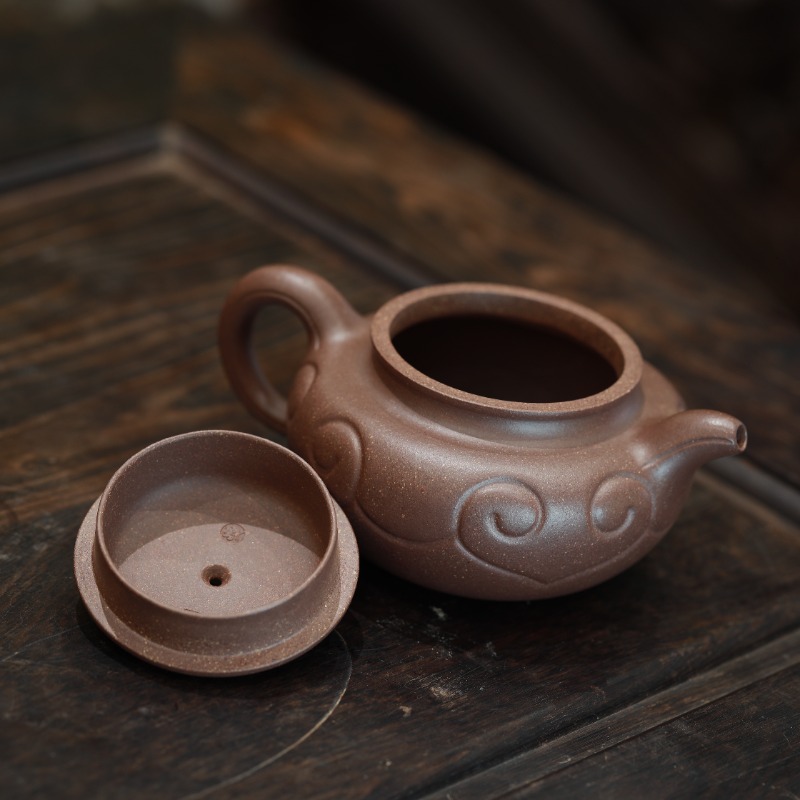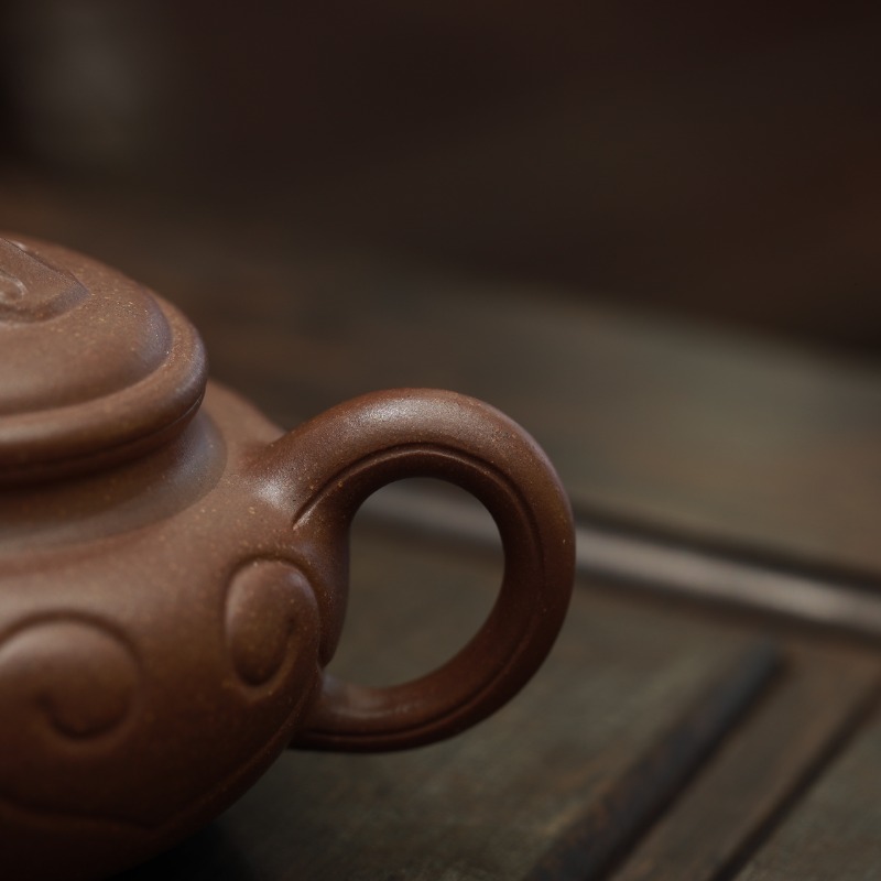 Bề mặt thân ấm trang trí các đường vân Như Ý nổi nhẹ, bố cục đối xứng, chạm khắc tiết chế, giữ tinh thần cổ nhã.