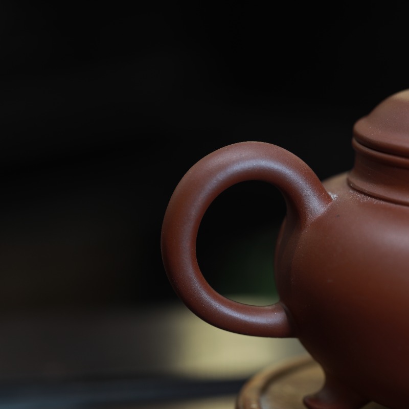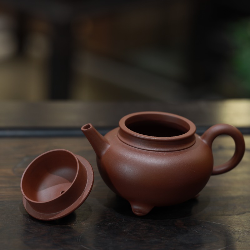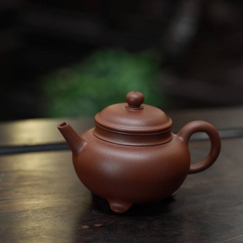 Ấm tử sa dáng Tam Túc, chế tác thủ công từ đáy tào thanh, dung tích 180ml. Dáng ấm tròn thấp, ba chân đỡ rõ ràng, thân kín và ổn định nhiệt tốt, cho nước trà đậm vừa, chắc vị và giữ cấu trúc thân nước – phù hợp với những buổi uống trà chậm, tập trung vào chiều sâu và hậu vị.