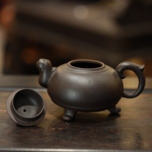 Ấm được chế tác từ đất Hắc Nê, loại đất có sắc trầm, kết cấu mịn và khả năng giữ nhiệt ổn định. Khi pha, hắc nê giúp nước trà lên vị tròn, dày, giảm gắt và làm rõ hậu vị, đặc biệt phù hợp với các dòng trà cần độ “đằm”.