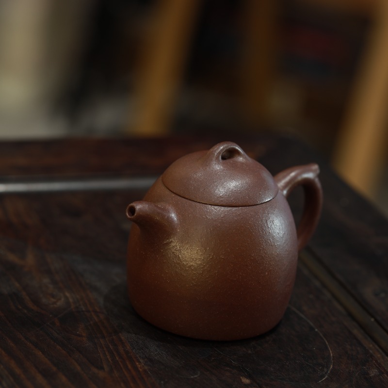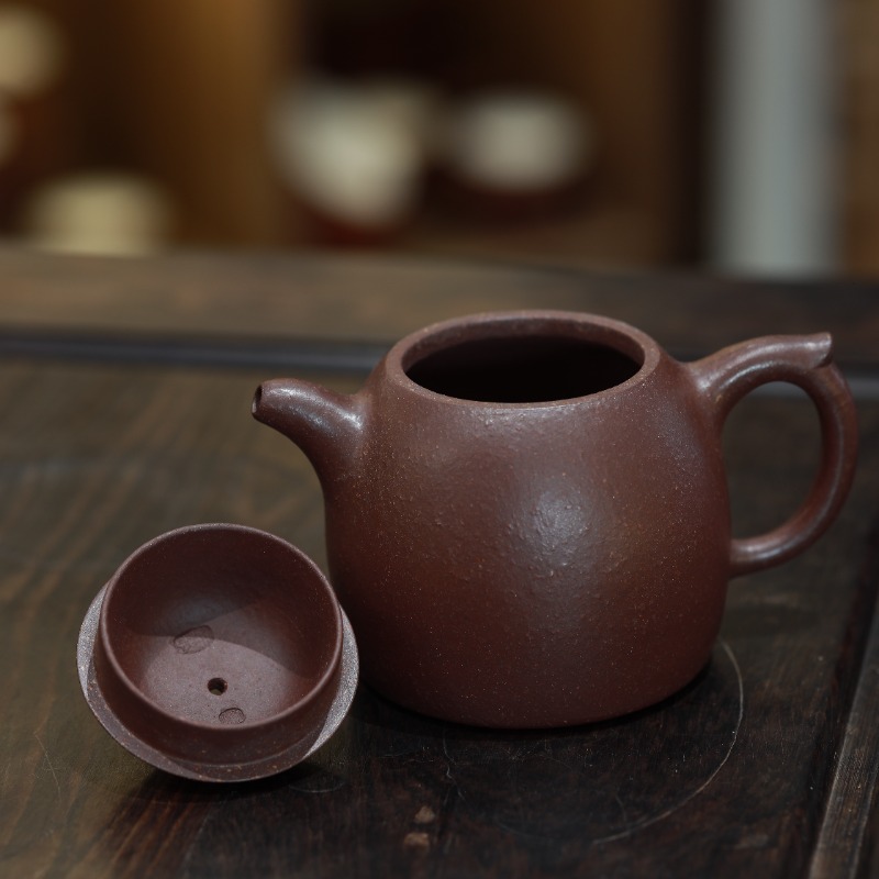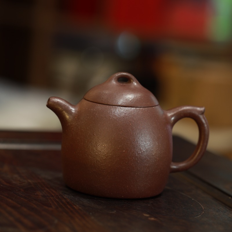Ấm tử sa dáng Tần Quyền, chế tác thủ công từ thạch hồng nê, dung tích 250ml. Dáng ấm nghiêm cẩn, kết cấu vững, dòng nước chuẩn xác; chất đất thạch hồng nê cho nước trà trong, rõ tầng vị, hậu ngọt sạch và bền – phù hợp với người uống trà chú trọng kỹ thuật pha và sự ổn định lâu dài.