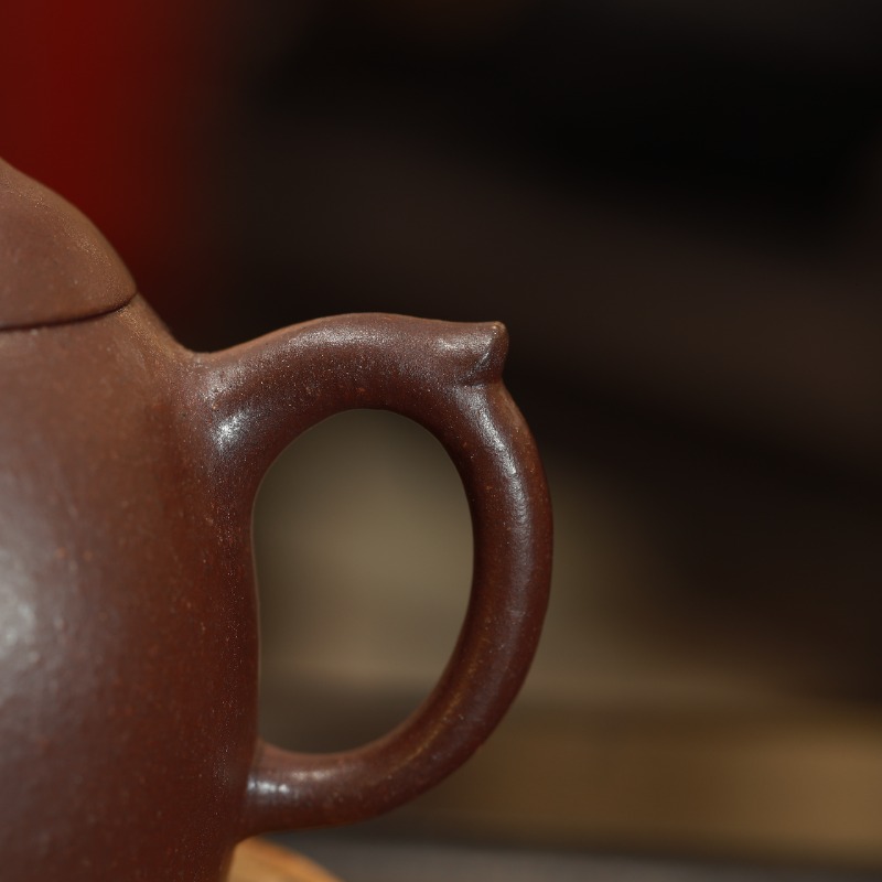 Vòi ấm thẳng, góc thoát nước dứt khoát; dòng chảy tập trung, không tán, giúp kiểm soát tốc độ rót rất tốt – yếu tố quan trọng khi pha các loại trà cần “cắt nước” chính xác. Quai cầm dựng đứng, tiết diện vừa tay, tạo cảm giác chắc chắn, đúng tinh thần của dáng Tần Quyền: ít biểu diễn, nhiều hiệu quả.