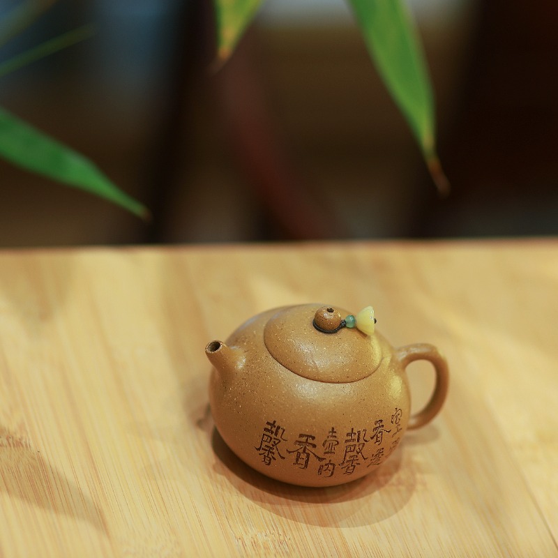 Ấm được chế tác từ hoàng kim đoàn nê, loại đất có độ xốp vừa, giữ nhiệt ổn định nhưng không quá dày. Khi pha trà, hoàng kim đoàn nê giúp nước trà lên hương rõ, vị tròn, giảm cảm giác gắt, đặc biệt phù hợp với các dòng trà cần sự cân bằng giữa hương và vị.