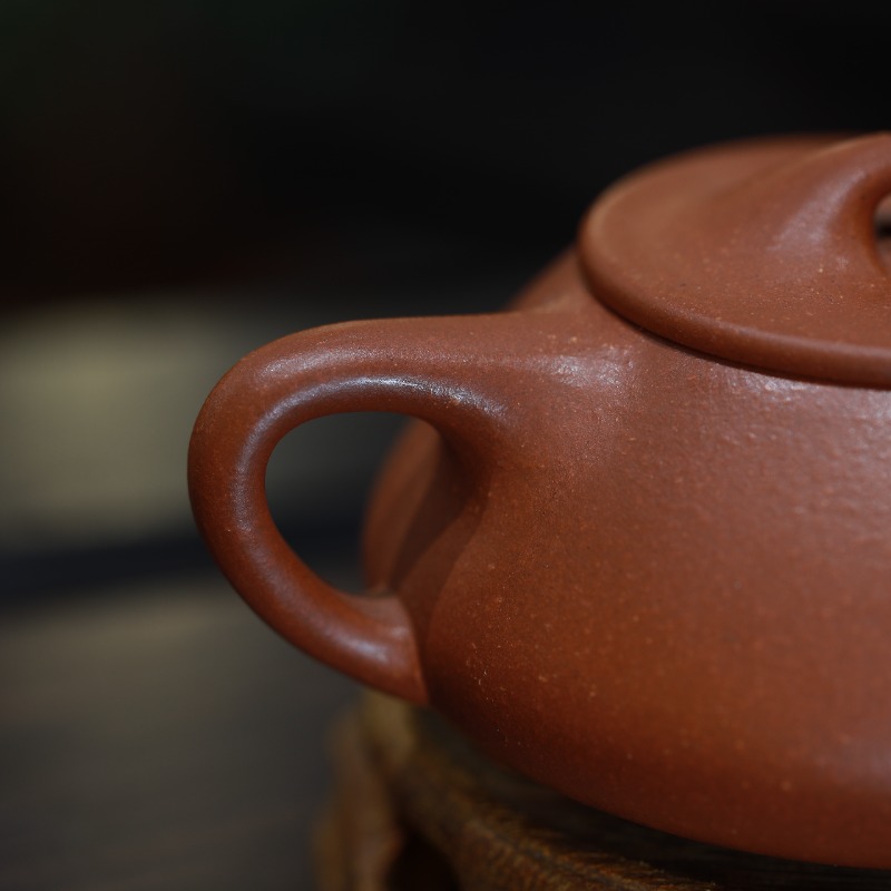 hạch Biều là dáng ấm kinh điển của tử sa, đặc trưng bởi hình khối tròn – thấp – chắc, lấy cảm hứng từ viên đá mài cổ. Ở phiên bản này, thân ấm dẹt vừa, đáy rộng, giúp phân bổ nhiệt đều và tạo dòng nước ổn định trong suốt quá trình pha.