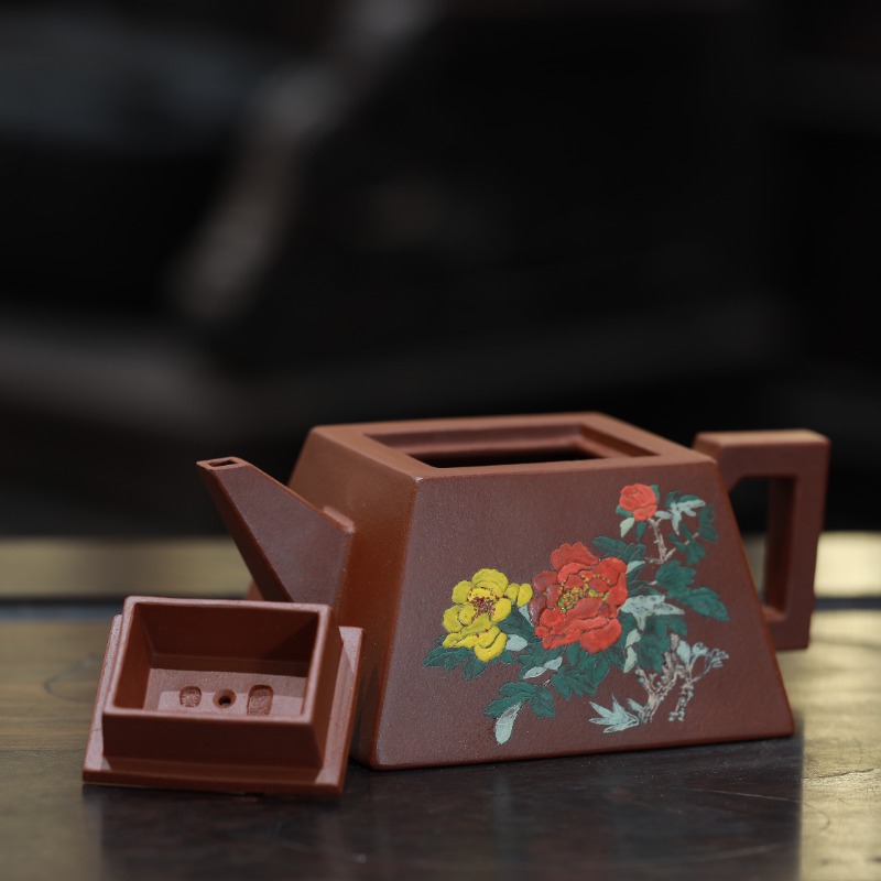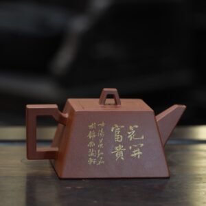 Ấm tử sa dáng Tứ Phương, chế tác thủ công từ thanh thủy nê, dung tích 300ml. Dáng ấm vuông vức, đường nét rõ ràng, kết hợp họa tiết thư họa thủ công, mang phong vị cổ điển và khí chất trang nhã, phù hợp cho người chơi ấm yêu hình khối và bố cục nghiêm cẩn.